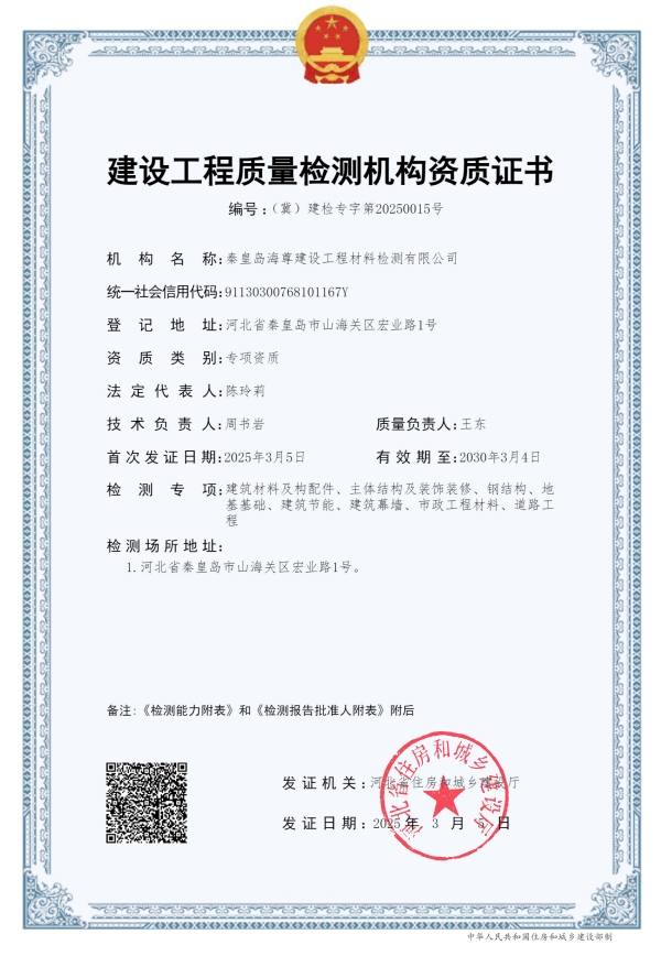 秦皇島首家幕墻、風機盤管檢測資質落地海尊檢測公司,歡迎有工程檢測驗收需求的各位同仁洽談合作。🤝聯(lián)系人:王東,聯(lián)系電話:15333333688。